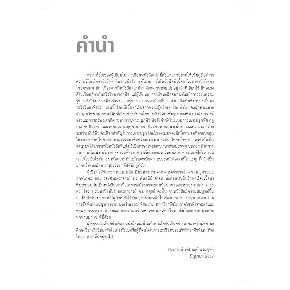 "สรีรวิทยาพืชไร่" เป็นศาสตร์ที่สำคัญมากในการศึกษาในสาขาพืชไร่ เนื่องจากเป็นความรู้ความเข้าใจเกี่ยวกับการพัฒนาและเจริญเติบโตของพืช จนถึงการให้ผลผลิต ซึ่งมีความรู้ในหลายภาคส่วนประกอบกัน ตั้งแต่ในส่วนของสรีรวิทยาวิทยาภายในหนึ่งเซลล์พืช ไปจนถึงสรีรวิทยาของกลุ่มประชากรพืชไร่ เพราะความรู้ความเข้าใจเกี่ยวกับกลไกทางสรีรวิทยาของพืชไร่เกี่ยวข้องกันอย่างแยกไม่ได้ ดังนั้น ในหนังสือเล่มนี้จึงประกอบไปด้วยเนื้อหาหลายๆ ส่วนที่จะทำให้ผู้อ่านติดตามกลไกทางสรีรวิทยาของพืชไร่ได้ในหลายระดับอย่างน่าสนใจ