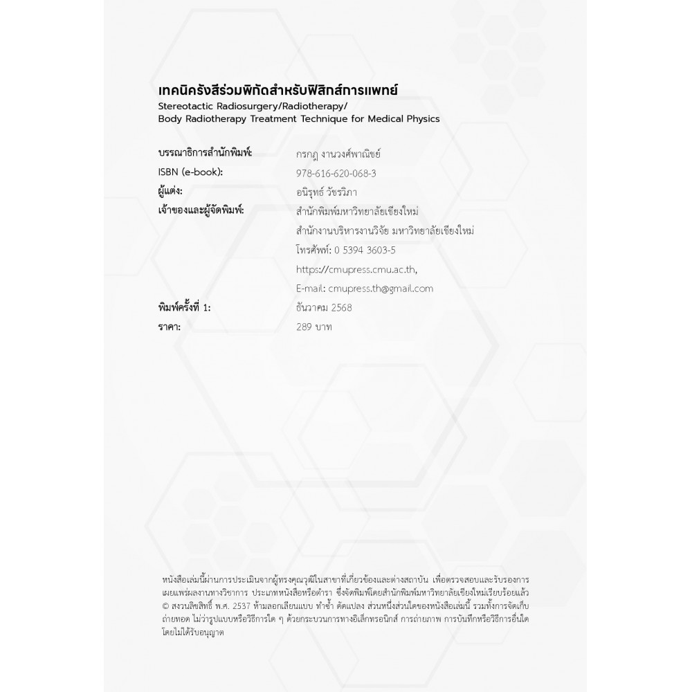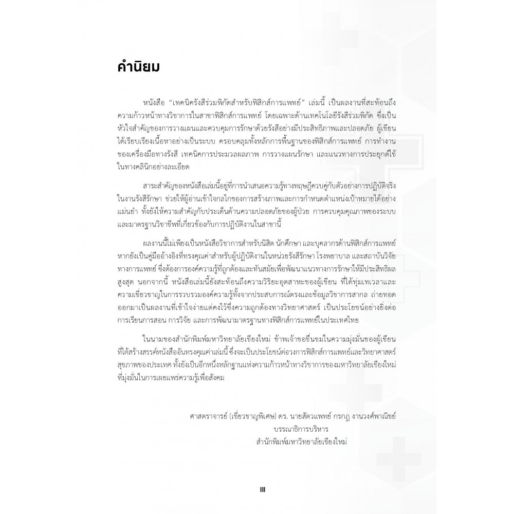 หนังสือ "เทคนิครังสีร่วมพิกัดสำหรับฟิสิกส์การแพทย์" เล่มนี้ เป็นผลงานที่สะท้อนถึง
